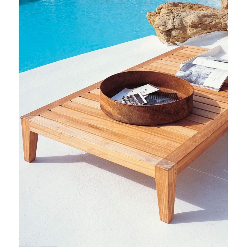 La collection Synthesis du fabricant italien Unopiu est une ligne riche qui se caractérise par une combinaison originale de Teck et de la fibre synthétique. Cette table basse en teck trouvera facilement sa place au bord d'une piscine, sur laquelle cocktails et crème à bronze viendront s'y poser.