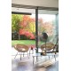 Ses finitions en acier et HPL lui permettent à la fois d'être utilisée à l'intérieur comme à l'extérieur.