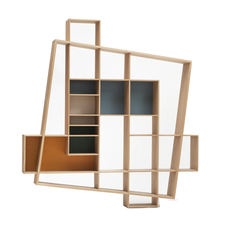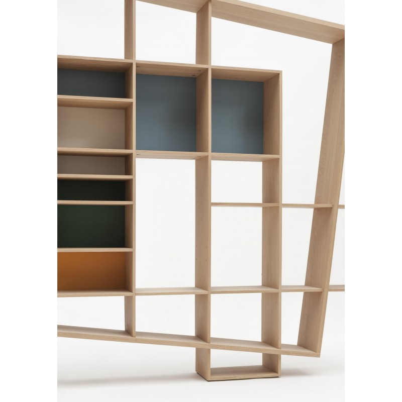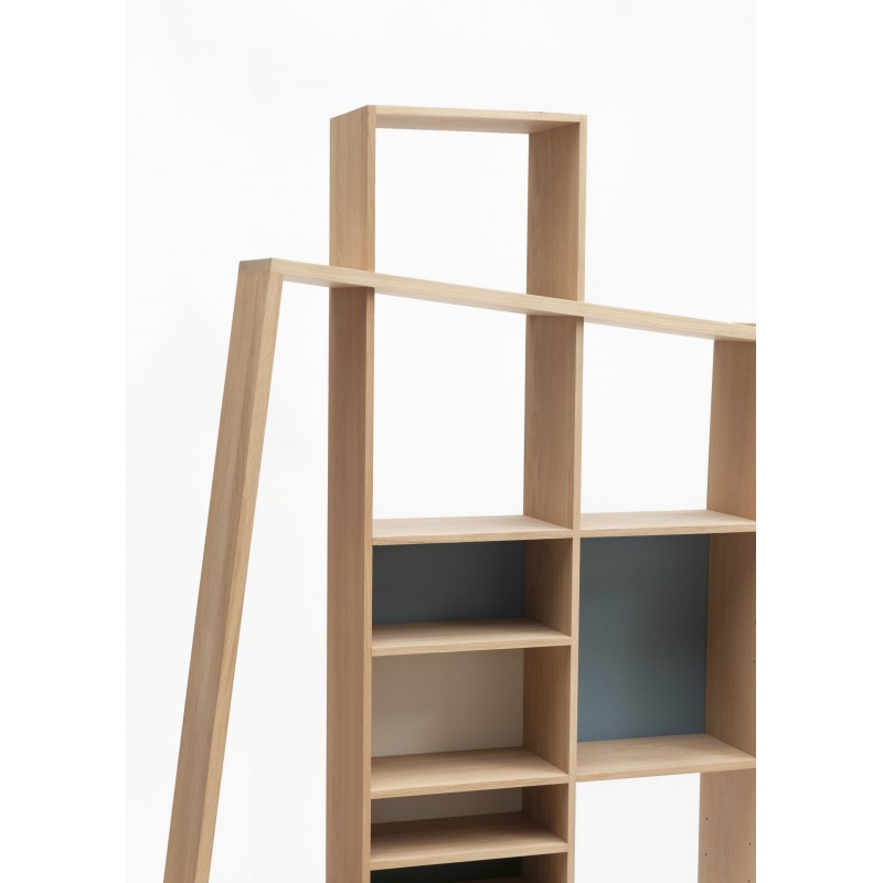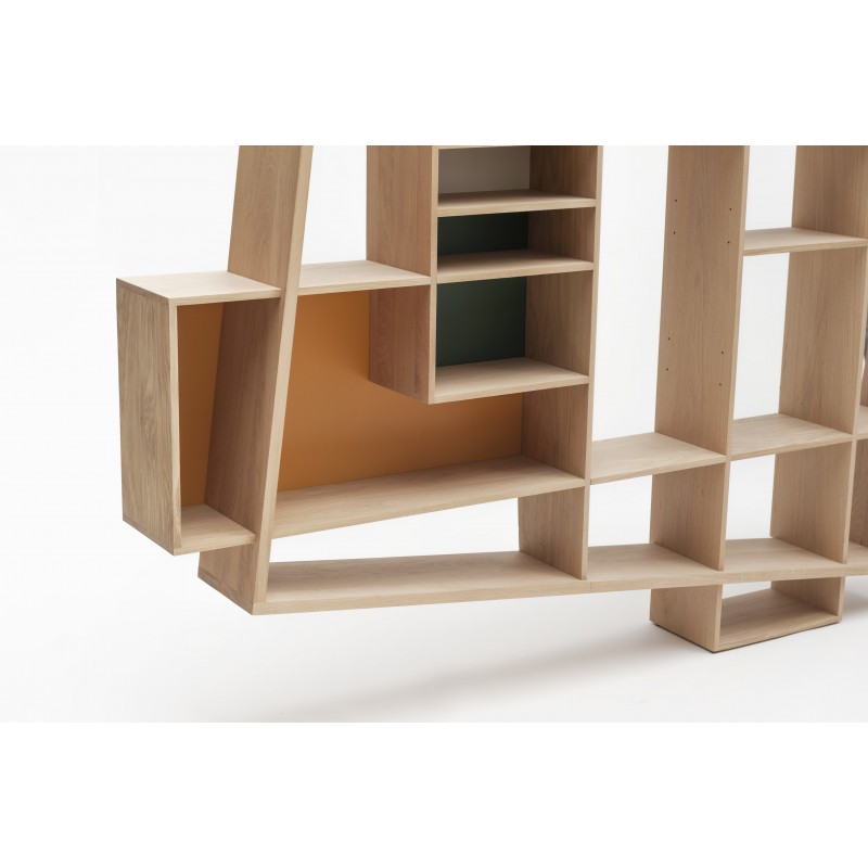 La bibliothèque Frisco propose les rangements d'une bibliothèque classique avec un design asymétrique très original.