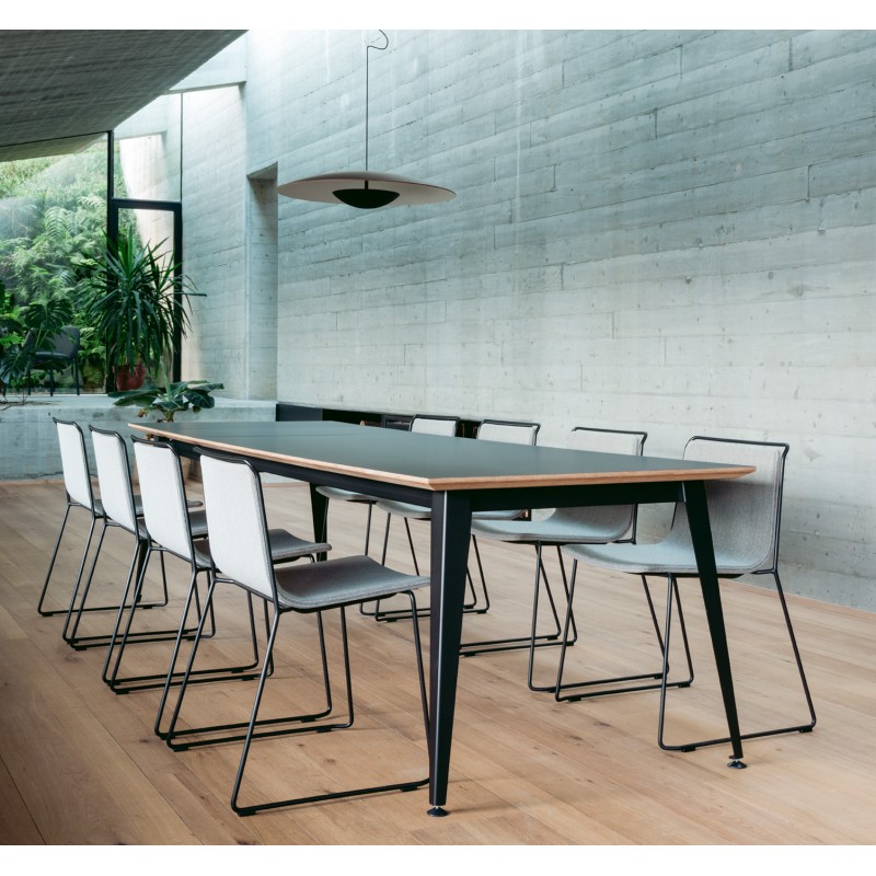 L'élégance et la légèreté de cette chaise trouvera facilement sa place autour de votre table. Le tissu de cette chaise est composé à 100% de fibres de Trevira, une matière à la fois résistante et respectueuse de l'environnement.
