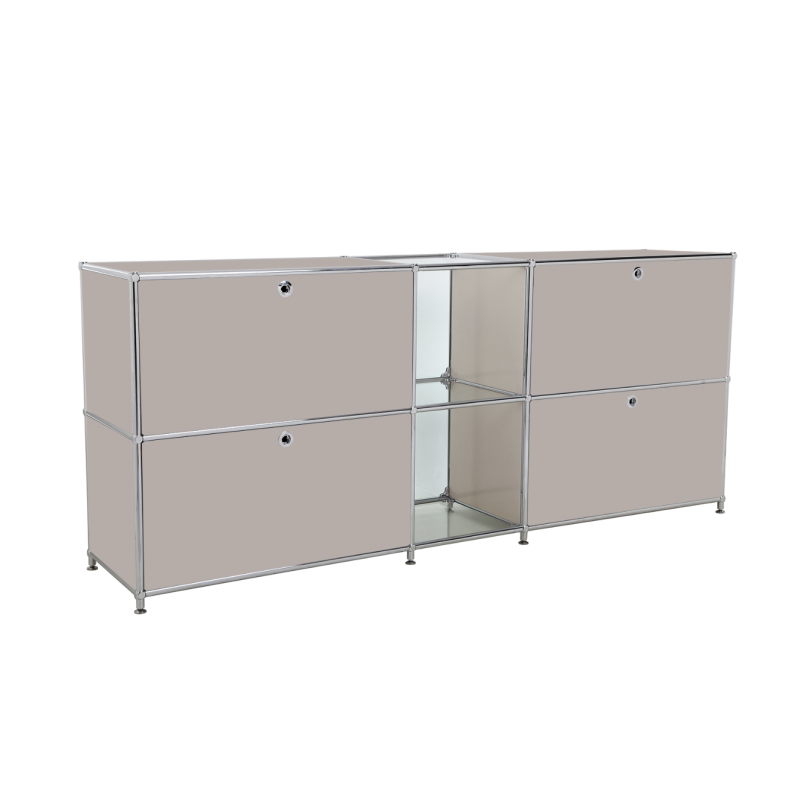 Ce buffet est composé de 4 modules tiroirs et d'une vitrine vous permettant d'exposer votre décoration sous verre.