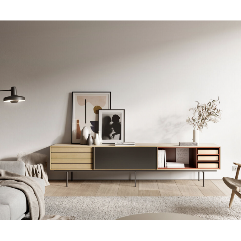 La gamme Aura de la célèbre marque Treku a été configurée principalement à destination de meubles de salons/salles à manger. Ici, découvrez plusieurs compositions de meubles TV qui apportent un esprit scandinave travaillé avec des matières nobles telles que le bois et l'acier.