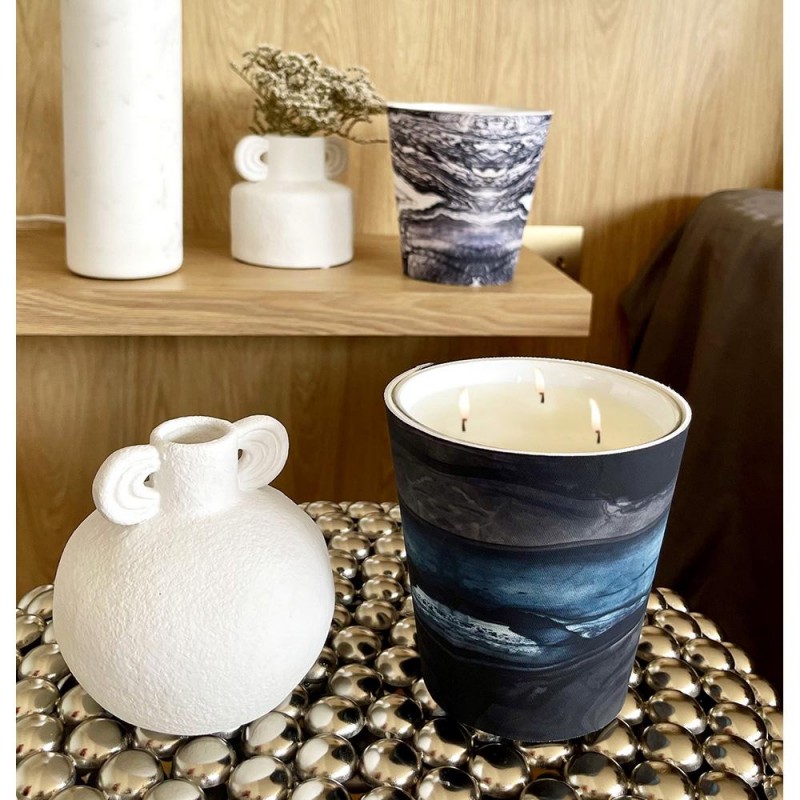 La collection Baka tire son inspiration d'une pierre agate bleu qui aurait été zoomé. Toute la beauté de cette oeuvre se situe dans les imperfections de son reflet qui en font une pierre d'exception.