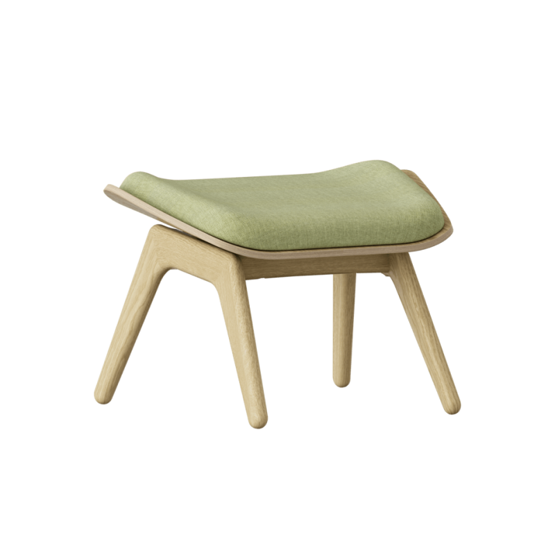 Les pieds en chêne massif de l'Ottoman sont visuellement soulevés de la base, ce qui ajoute un caractère léger au design. La forme des coussins a été conçue pour exposer légèrement la coque de l'Ottoman, ce qui permet de mettre l'accent sur les détails du bois. Une palette de couleurs scandinaves pour le rembourrage a été soigneusement sélectionnée pour mettre en valeur le bois naturel du chêne.