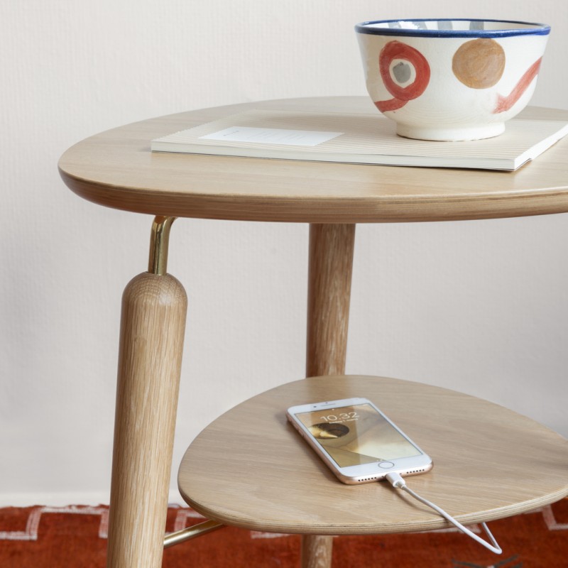 My Spot est une table d'appoint élégante, idéale pour les endroits de votre intérieur où vous avez besoin de ranger des objets tout en les gardant à portée de main. La table d'appoint combine un design scandinave classique, épuré et minimal avec la touche moderne d'un port de charge USB multiple intégré.