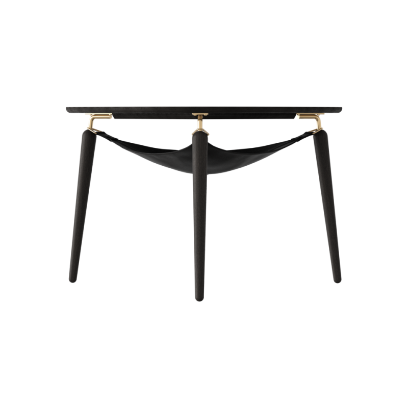 Des pieds fins et gracieux fixés à un support métallique élancé et un plateau arrondi sculpté donnent à Hang Out un profil léger et aérien. Sous le plateau de la table, un sac spécial est suspendu sur les trois pieds de Hang Out comme un hamac. L'élégant sac à double face en cuir et textile est parfait pour ranger les petits objets.