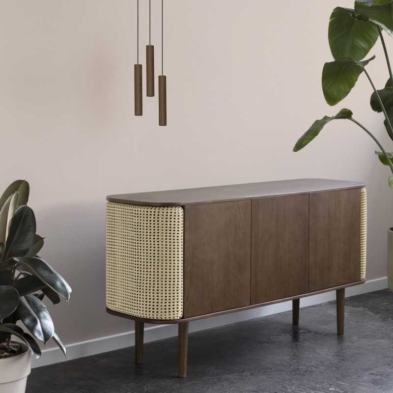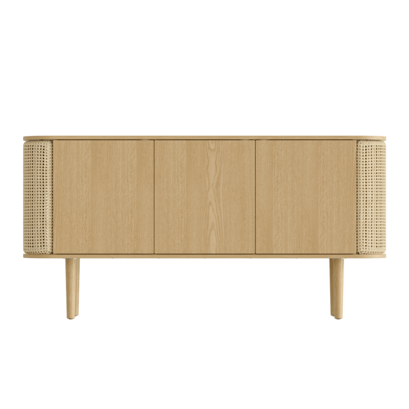 Le buffet Treasures est un meuble personnalisable à l'expression nordique. L'armoire est fabriquée en bois de chêne plaqué et ses côtés incurvés sont recouverts d'un revêtement canage qui donne à Treasures un caractère singulier.