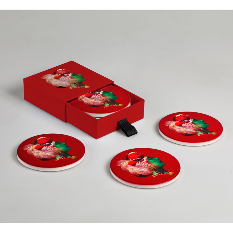 Les dessous-de-verre Canarbella représentent une femme indienne coiffée d'un oiseau aux plumes soyeuses. Ce vide-poche, au design culturel apportera couleur et sagesse à votre intérieur.