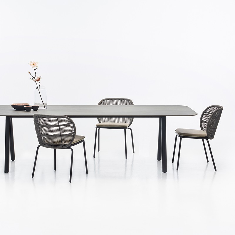 Partagez un moment de convivialité autour de la table à diner KODO. Le tissage tactile et les coussins confortables amènent votre expérience d'assise à un niveau rarement égalé. Corde en fibre acrylique.
