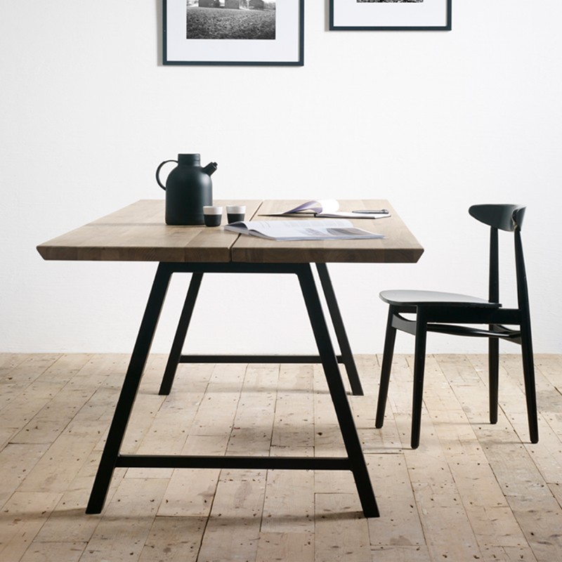 Table Albert de la marque Vincent Sheppard. Un modèle de table à diner avec un plateau chêne, aux dimensions généreuses. Piètement modifiable, existant en A ou en X. Idéal dans un salon pour apporter un esprit chaleureux à la pièce.