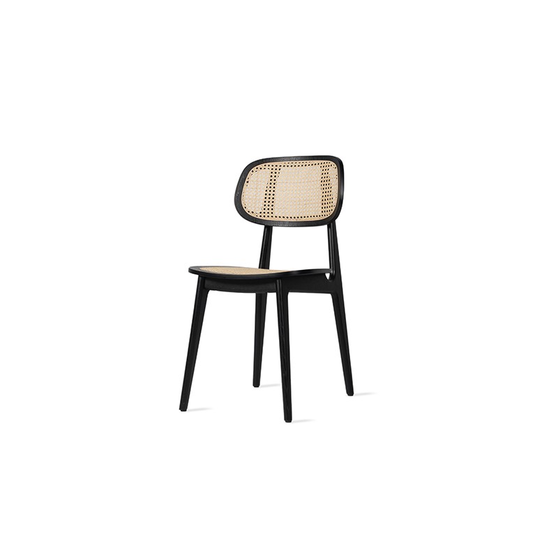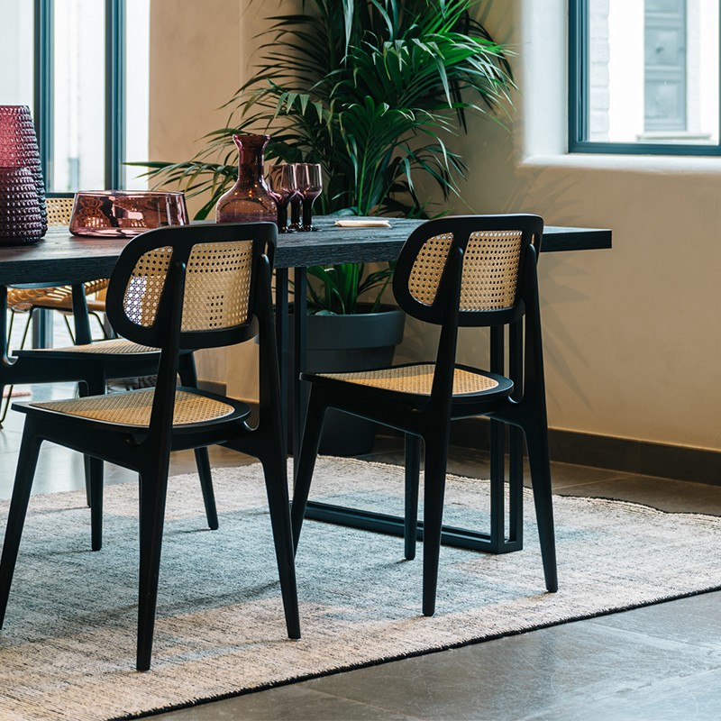 La chaise Titus de Vincent Sheppard offre un style unique à votre salon. En effet, avec son assise et son dossier en cannage, elle vient casser la couleur noire de sa structure.