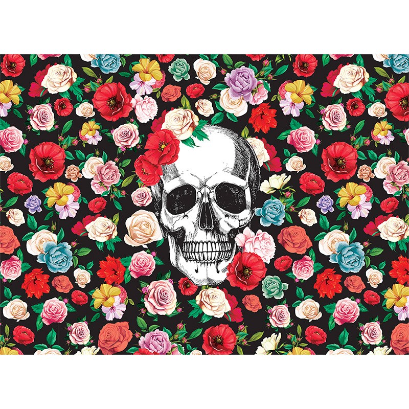 Motif original d'un crâne au milieu de fleurs. Assorti aux dessous de verre, vous aurez une table pleine de couleurs.