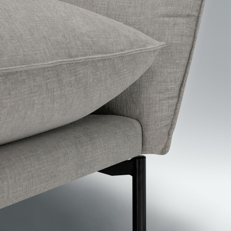 Comble du design, les accoudoirs inclinés de la collection Hugo se confondent avec les coussins de son assise et de son dossier.