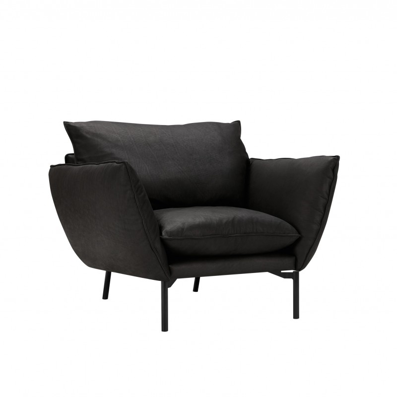 Comble du design, les accoudoirs inclinés de la collection Hugo se confondent avec les coussins de son assise et de son dossier.