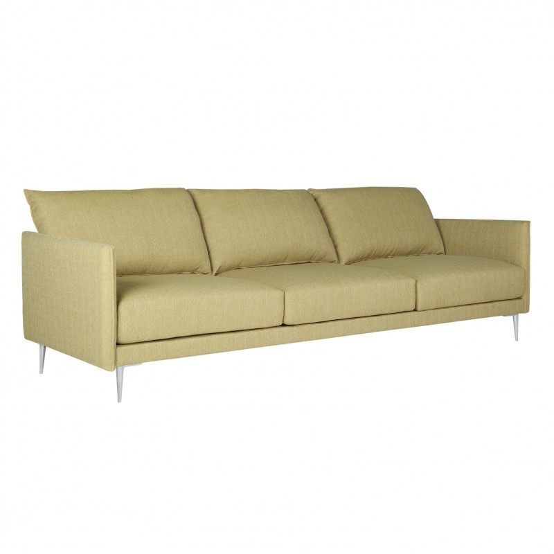 Son allure générale est totalement épurée et répond magnifiquement aux lignes géométriques et minimalistes des coussins du dossier et de l'assise. Ce jeu graphique est accentué par des accoudoirs effilés.