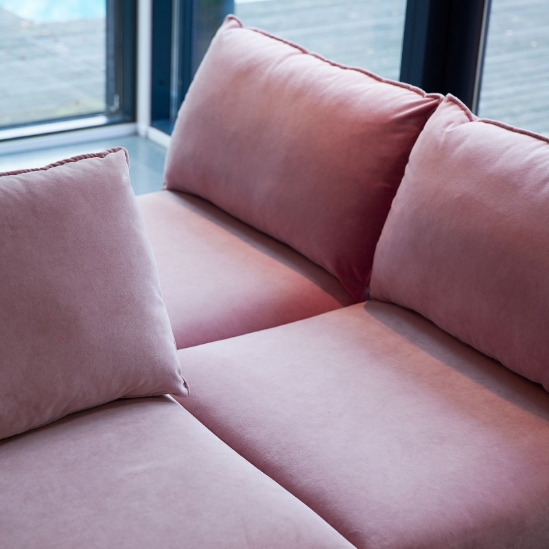 L'allure générale épurée de la collection Alva répond magnifiquement aux lignes géométriques et minimalistes des coussins.