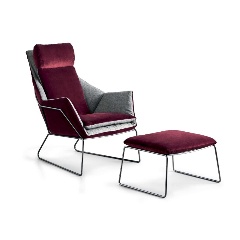 Pour parfaire votre confort, l'assise est associée à un repose-pied à la structure métallique fine.