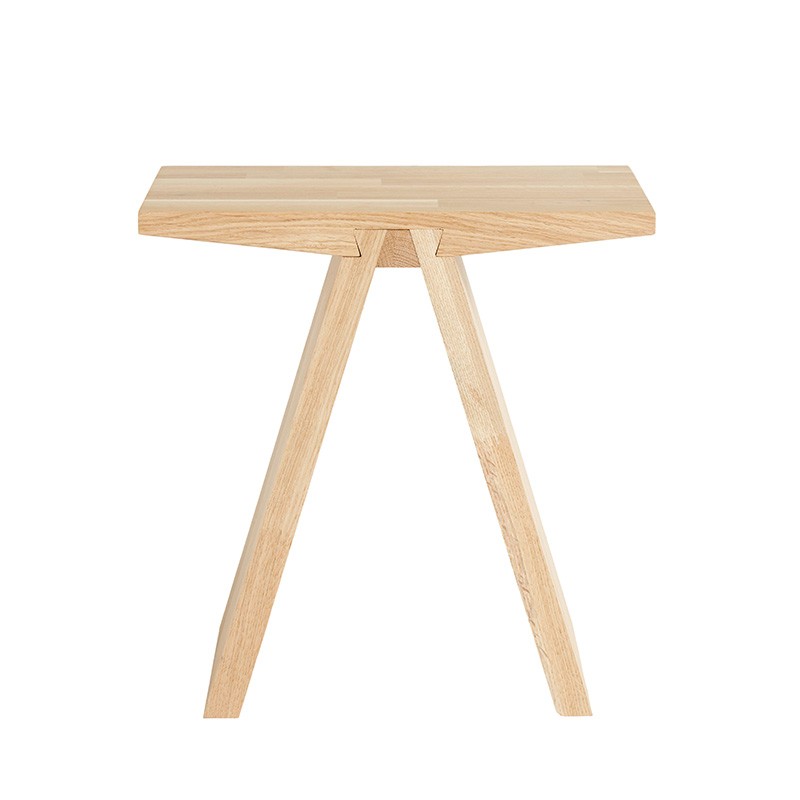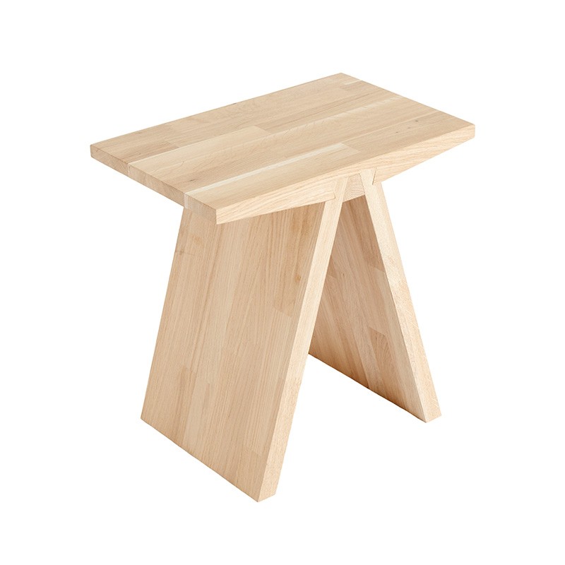 Le design simpliste des tabourets Angle valorise son bois teck.