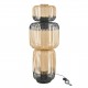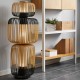 Son socle est en métal et les abat-jour superposés les uns aux autres, tous différents, sont en lames de bambou bicolores. La lumière est tamisée et semble s'immiscer par faisceaux entre les lamelles pour jouer avec vos murs et meubles.