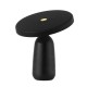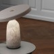 Son solide pied, à l'aspect très organique, est en marbre italien tourné à la main. À son sommet, une boule de laiton permet d'orienter un large disque en métal. Une led intégrée permet un éclairage totalement inédit. Entre équilibre et mouvement, le cercle d'acier semble flotter au-dessus de sa base massive.