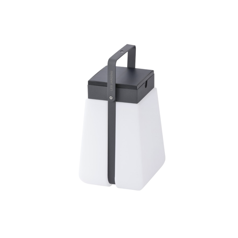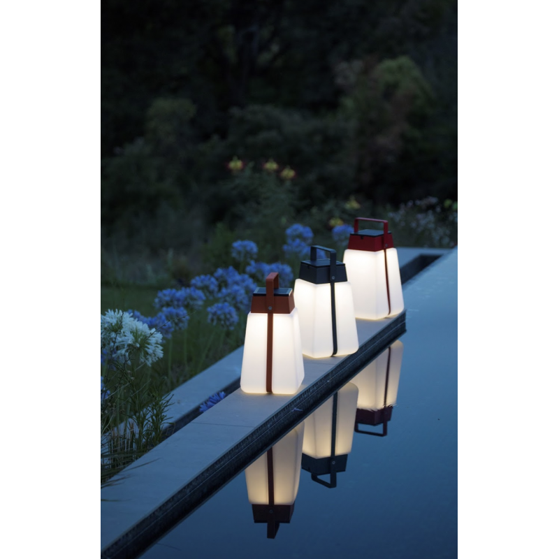 Lampe solaire BUMP, lanterne nomade, solaire et rechargeable en rotomoulé avec bloc et poignée en aluminium.