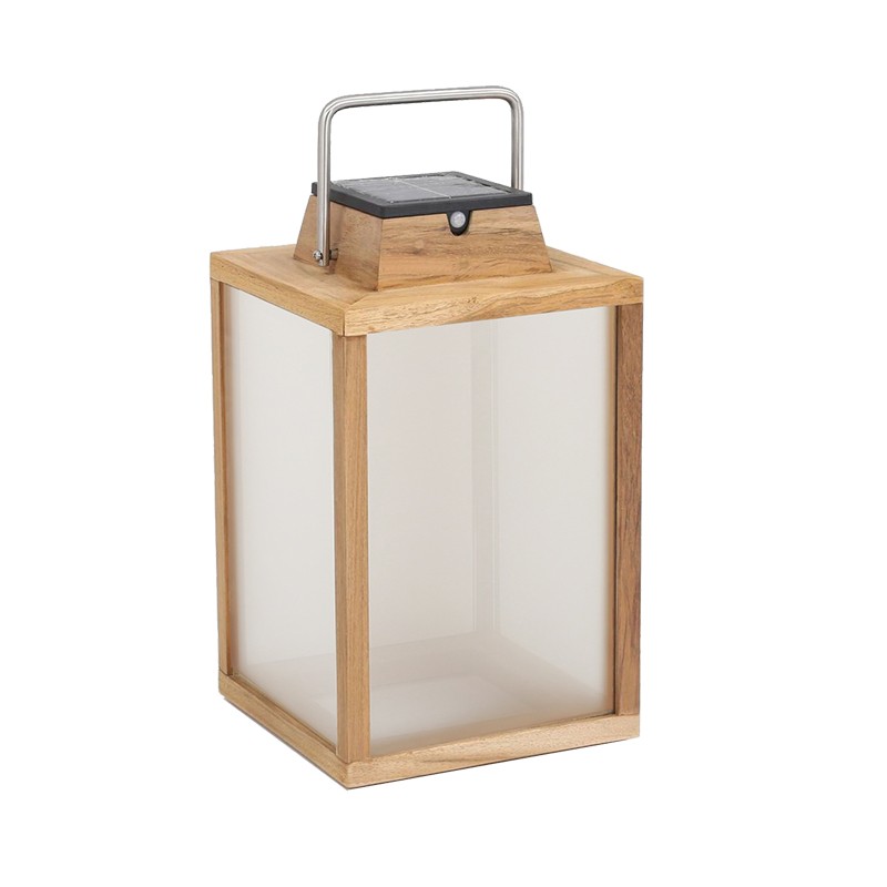 Lampe solaire TRADITION lanterne nomade, solaire et rechargeable en teck, verre dépoli acrylique.