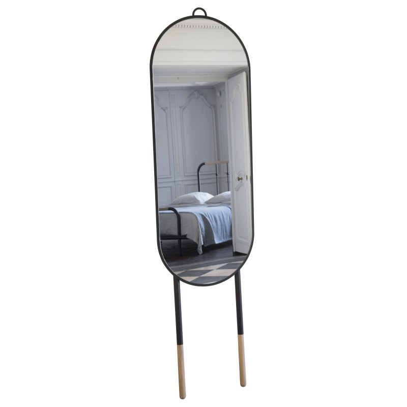 Avec une structure en acier et une peinture poudre Epoxy, deux pieds minimalistes en chêne bicolores semblent s'échapper de la partie basse du miroir My Lord.