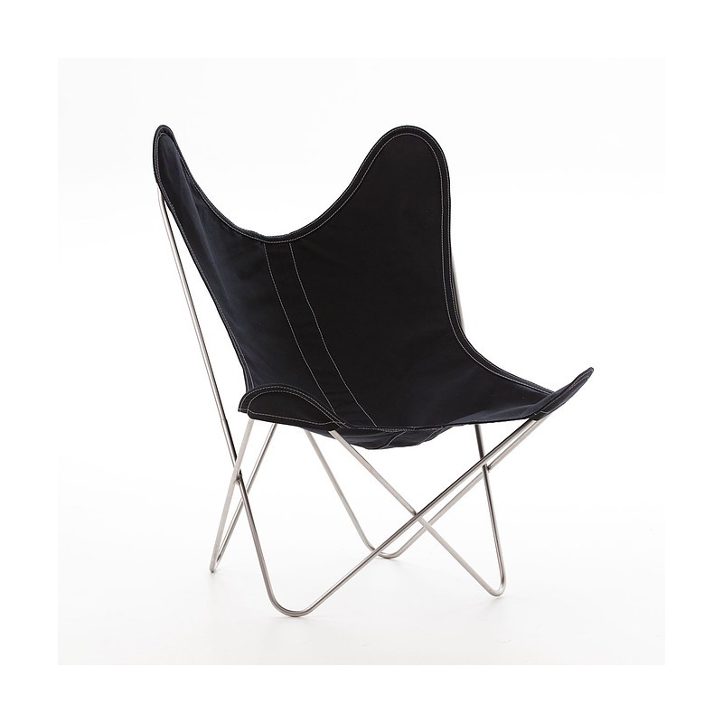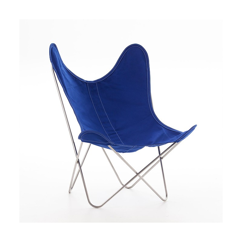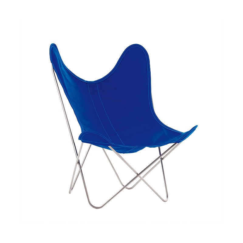 Fauteuil AA Butterfly structure inox marin - toile coton