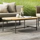 L'austérité et le minimalisme du piètement remontent vers la partie supérieure afin de venir encadrer et cercler le plateau ; plateau en teck massif non traité. Ce dernier est composé de plusieurs lames dont les lignes viennent rythmer le meuble.