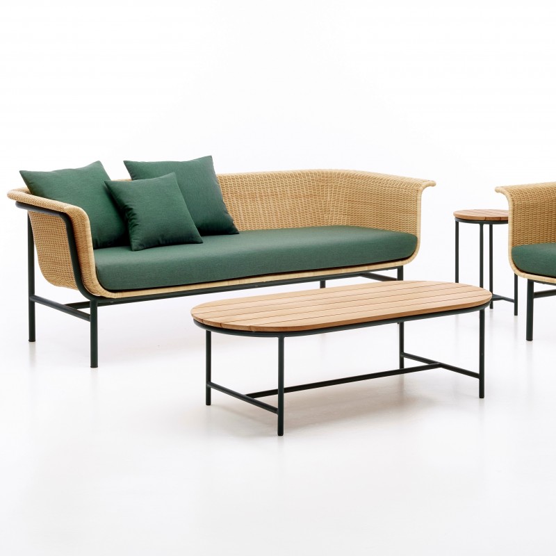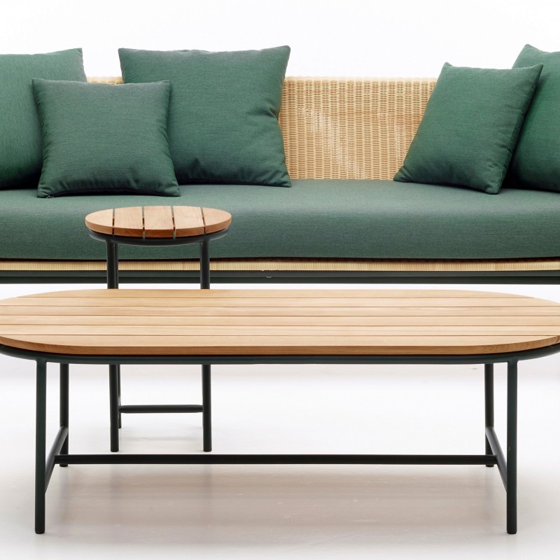 Comme pour le canapé et le fauteuil de la collection, la structure est en aluminium thermolaqué pour assurer force et pérennité.