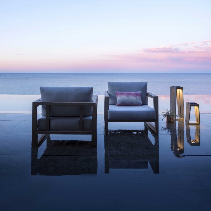 - Matériau : Teck Duratek. Coussin Sunbrella.