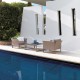 - Matériau : En aluminium laqué mat blanc, polyester tissé et coussins en tissu gris.