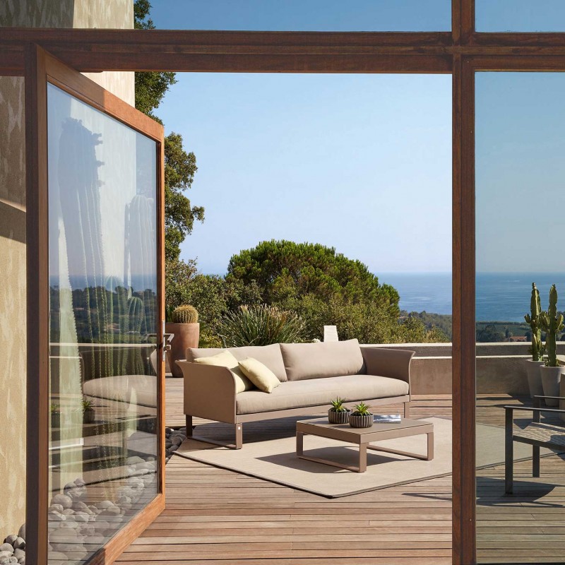 La marque française Sifas a eu la bonne idée de créer deux versions de la table basse Komfy : une carrée et une rectangulaire. Comme la collection du même nom, ce sont des modules rectilignes qui font la base de sa mise en forme.