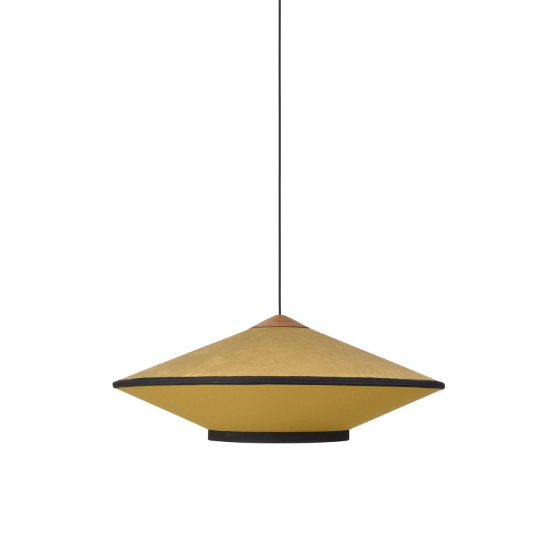 C'est avant tout la représentation de la cymbale du percussionniste que la Suspension Cymbal évoque. Partie supérieure en velours et cône inférieur en toile dirigent la lumière tamisée vers le bas. Ambiance extrême-orientale garantie.