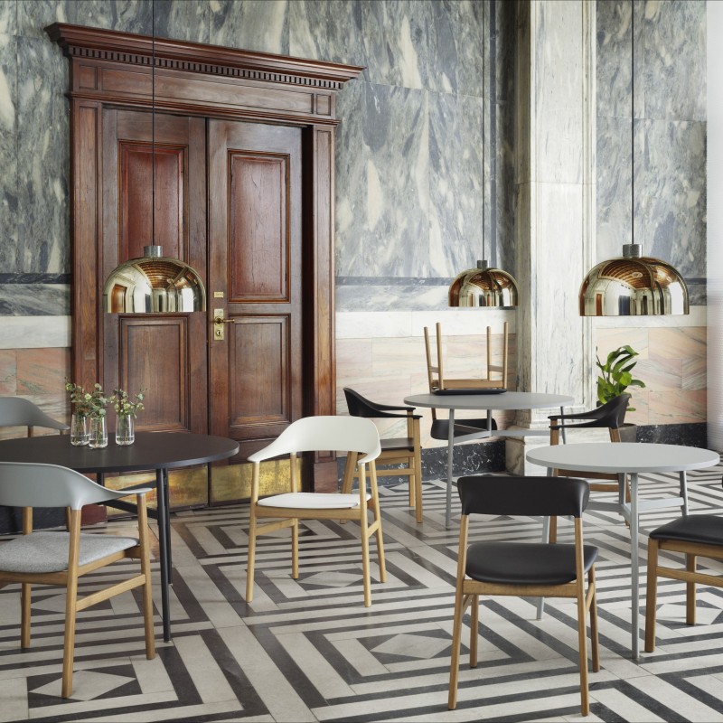 La forme en demi-sphère s'inspire de la culture danoise en reprenant la silhouette des lampes dans les rues de Copenhague.