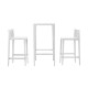 L'ensemble de bar comprend une table de bistrot de H.100 x L.50 x P.50 cm et 2 tabourets de bar de L.50 x P.47 x H.87 cm.