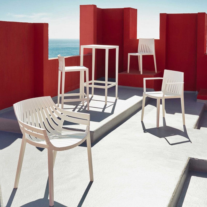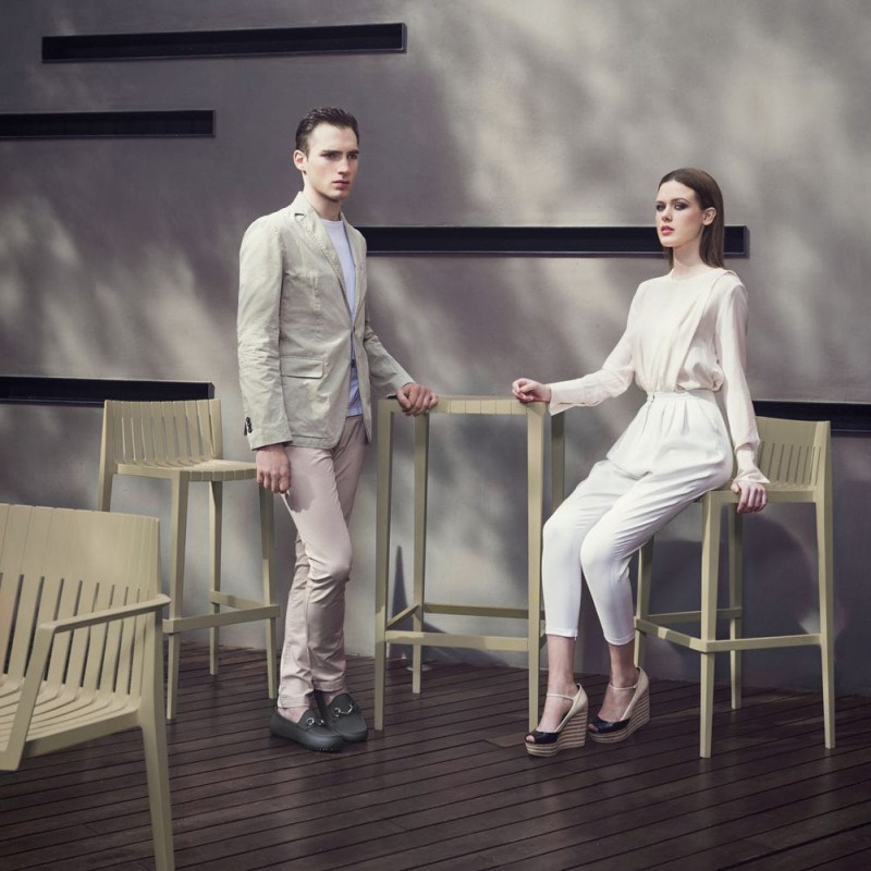 La marque hispanique Vondom a confié la création de son ensemble de bar Spritz au studio Archivolto Design. Cette ligne est composée d'une table haute et de deux tabourets hauts. Comme tout le mobilier de la griffe, cet ensemble vous offre une réelle solidité. Pour cela le polypropylène additionné à de la fibre de verre a été utilisé. Mais ce qui est remarquable dès le premier coup d'œil c’est la simplicité et le minimalisme de ses lignes.