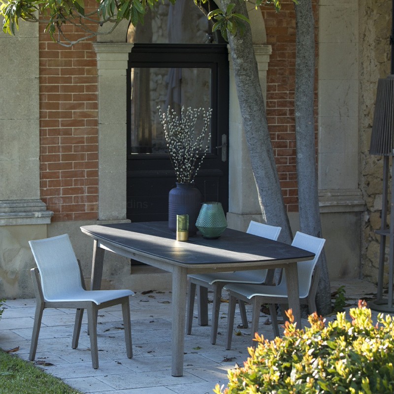 Pour compléter sa collection Copenhague, la marque 100% française Les Jardins a créé une table qui, grâce à un ingénieux système, peut accueillir entre 8 et 10 personnes.