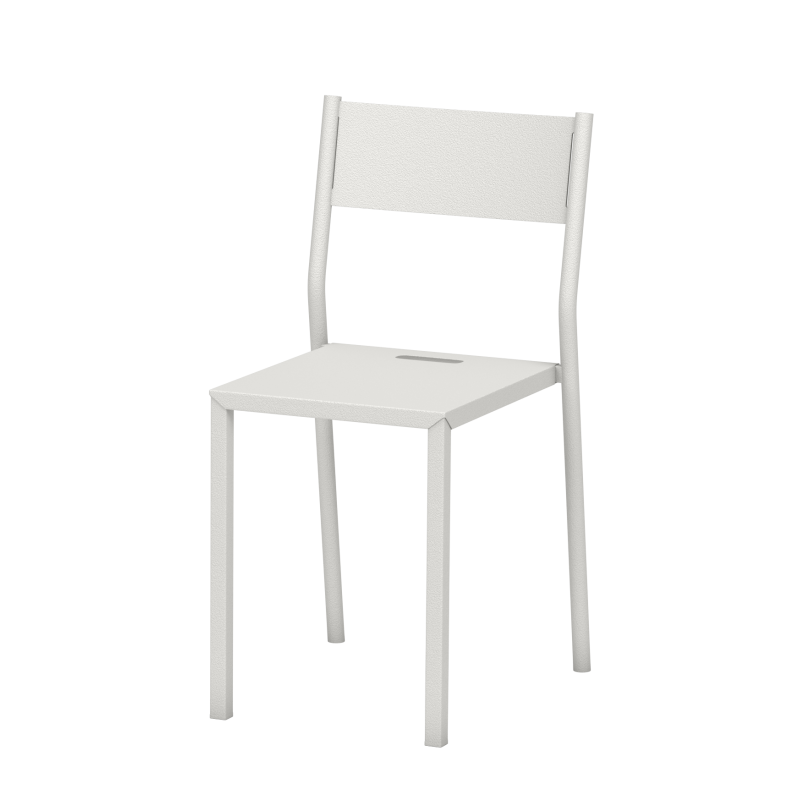 Sa surprenante légèreté rappelle la présence d'une astucieuse poignée à l'arrière qui permet de les empiler tout comme sur une terrasse de café.