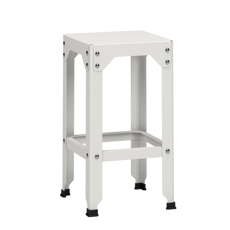 Luc Jozancy signe un tabouret au design résolument industriel aux formes rectilignes mises en exergue par son piètement fuselé.