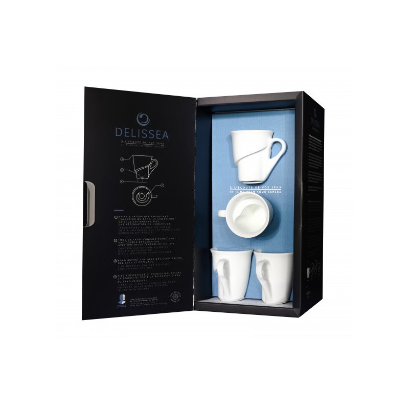 La marque Delissea propose un ensemble de 4 tasses qui n'ont qu'un seul et unique but : sublimer l'arôme de votre café pour en faire un moment unique. Pour que cette magie se produise, Arnaud Baratte, artiste du vin, a mis cette fois-ci tout son talent au service du café et du thé.